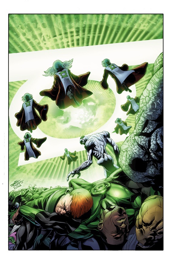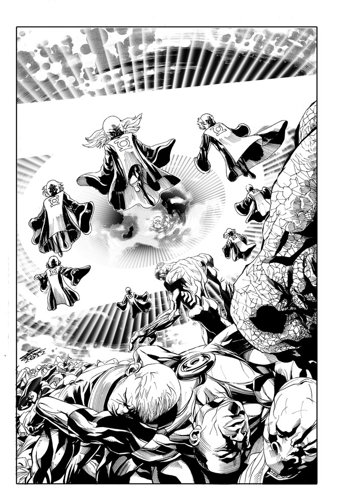 TWO: You do a quickie sketch.. a series of thumbnails that will give them something to imagine. In my case, it’s the Green Lantern Annual cover. I did come up with one or two, but lucky me, they liked the version i did the first time. Went for dynamic and looked for areas to draw your eyes and still give a ton for the colorist to do.
