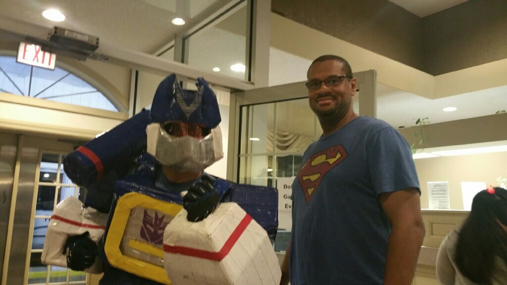 COSPLAYER SUPREME. So SUPREME, it seems he got Dan DiDio, executive Editor of DC Comics to make an actual character of him named Freighttrain. This real life superhero does cosplay for the people of DoDECA Con every year since they’ve started. But couldn’t do it this year because he was overbooked with his engagements, and asked Myself, Joseph Illidge ( writer and editor of many DC comics books like The Batman and long time bestie) and Larry Stroman, who helped to create a comic called Tribe in the ’90’s and also worked on a slew of X-books for Marvel including Alien Legion….