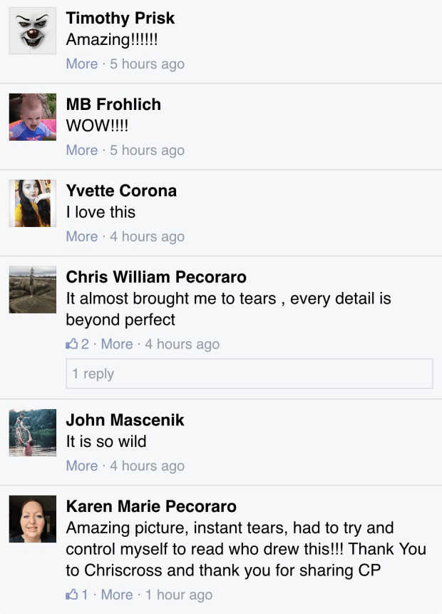 These are comments that just makes you keep drawing. Especially from Chris William Pecoraro, Christopher’s son.