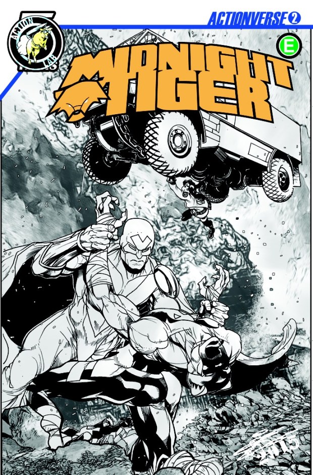 I was asked by Action Lab, which is an up and coming indie comics publisher who has an ever growing league of titles, to do an alternate cover for Midnight Tiger, which has been a mainstay for Action Lab for years now. The characters Molly Danger, Fracture, Midnight Tiger , The Stray,and others are forming the ACTIONVERSE , which is a shared universe from multiple creators like Vito Delsante, Jamal Igle, Ray Anthony Height, Shawn Gabborin, Chad Cicconi, (and my apologies this I missed….)